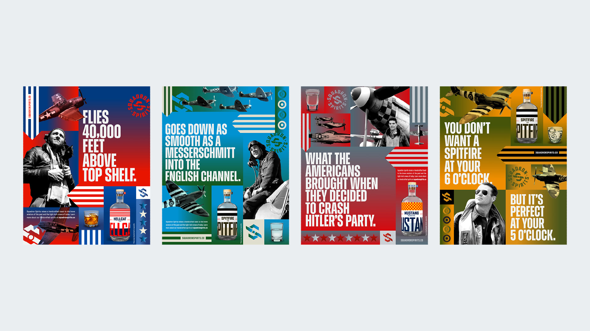 Posters and social posts for Squadron Spirts - a new liquor brand making craft spirits based around the great Allied airplanes of World War 2.